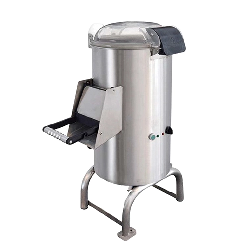 Pengupas Kentang Komersial ini menggunakan mekanisme yang dipacu motor dengan penggelek atau berus kasar dalaman. Kentang dilambung ke atas dan ke bawah berulang kali oleh daya sentrifugal putaran berkelajuan tinggi, mengalami geseran menyeluruh terhadap permukaan kasar dinding dalam dan bawah penggelek, serta terhadap kentang lain. Geseran seragam dan berterusan ini dengan cepat dan lembut mengupas kulit kentang.